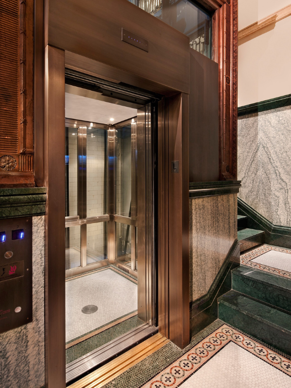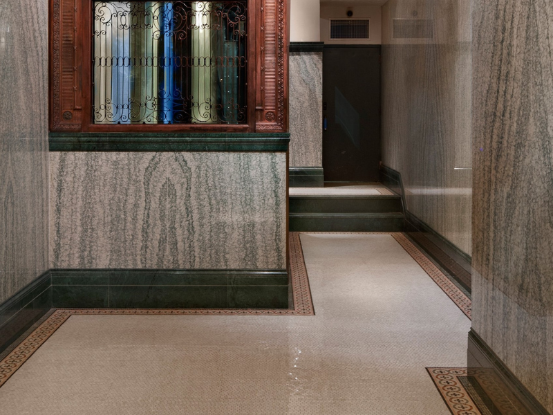 The search then began for an appropriate stone reminiscent of the original period. Although the owner was initially drawn to the idea of a contemporary white marble lobby, he was open-minded in allowing us to guide him to a more age-specific marble.
