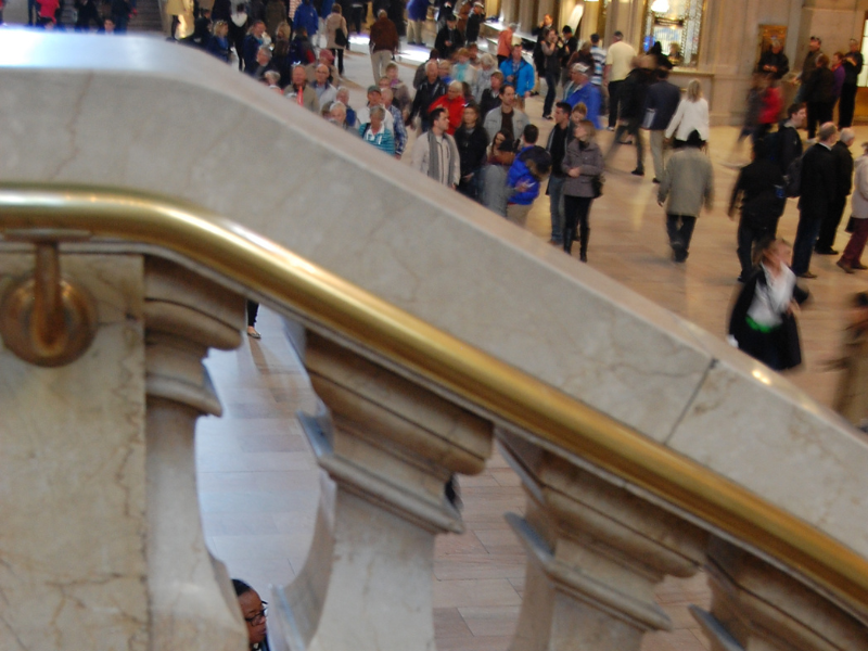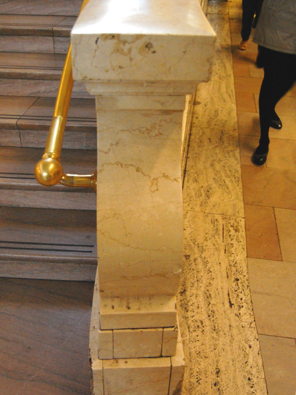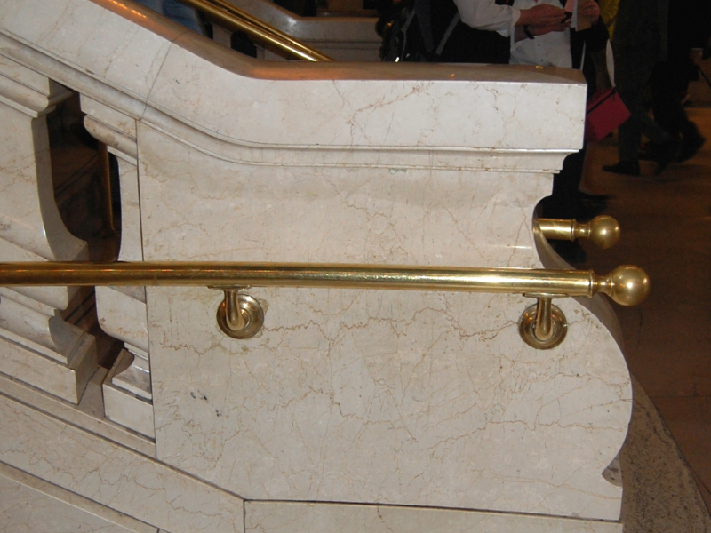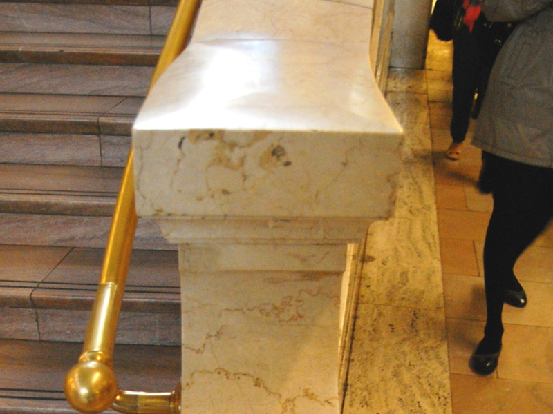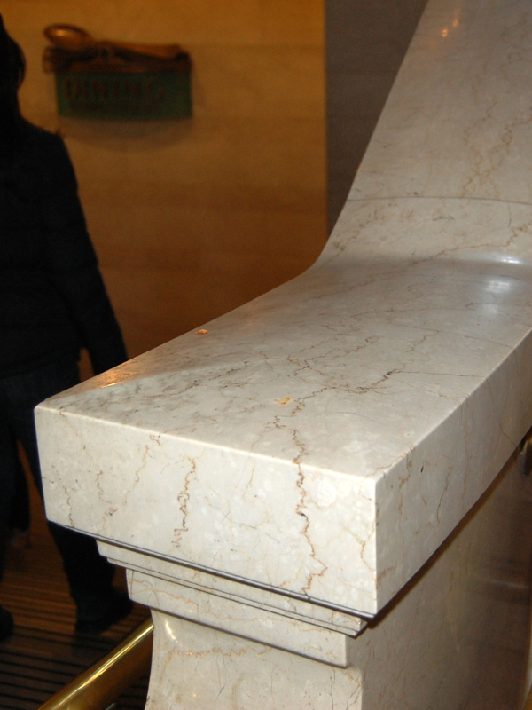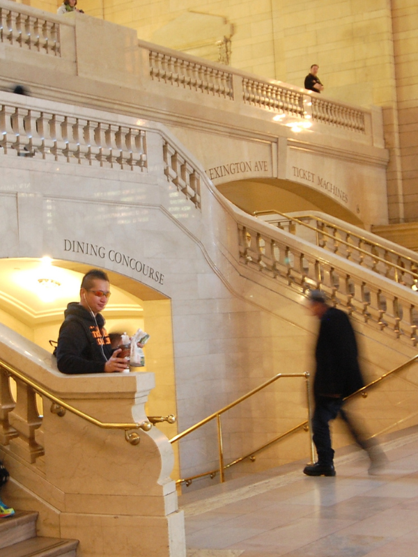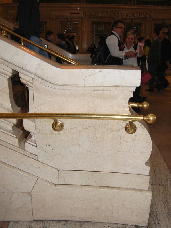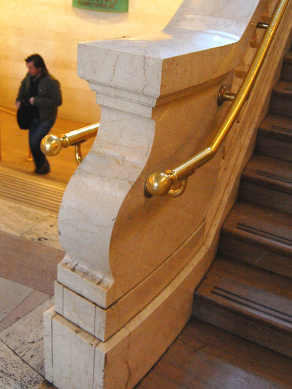 The Grand Central East Staircase showcases elegant, simple marble that harmonizes with the Main Concourse's 1990s aesthetic, preserving the building's balanced symmetry.