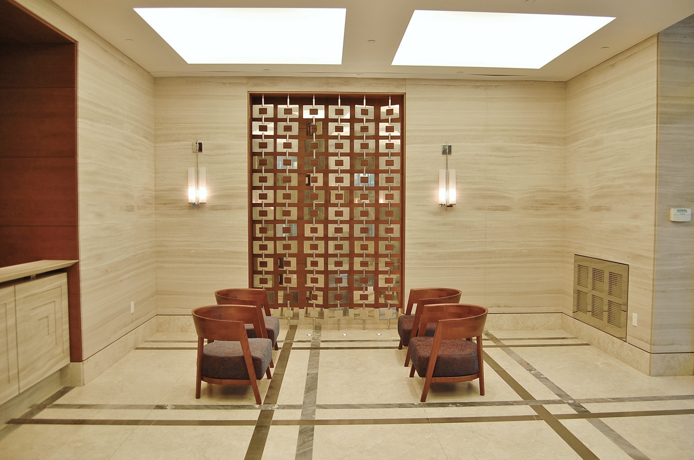 Miller Druck fabricated and installed all stone flooring, wall cladding, columns, and reception elements, utilizing Omani Beige limestone, Gray Foussana marble with Bursa Beige and Carrara White marble accents to achieve a balanced contrast and elegance. Executed with precision and meticulous installation, the project showcases Miller Druck’s craftsmanship and attention to architectural detail in luxury interior environments.