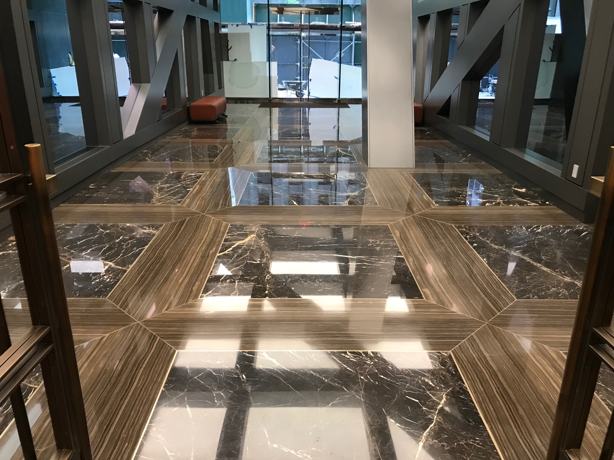 At the iconic 53 West 53rd Street tower, Miller Druck completed the fabrication and installation of natural stone finishes for the main lobby, reflecting the building’s modern architectural sophistication. The design features Noir St. Laurent, Matrix, and White Onyx, meticulously detailed and installed to achieve a seamless, sculptural aesthetic—a showcase of Miller Druck’s precision and craftsmanship in high-end architectural stonework.